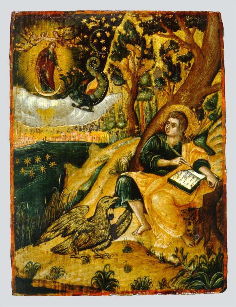 The prophetic vision given to John in Revelation parallels Emmet’s revelation of the real world, highlighting apocalypse as an act of seeing what lies beyond the visible plane.