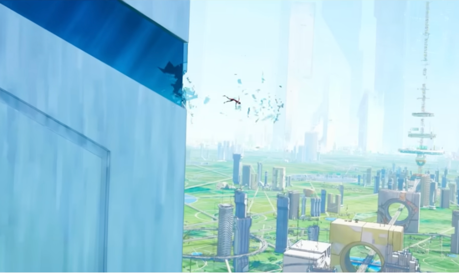 Miles Morales jumping off of a building.