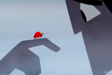 Jack is reminded of Ashi from the ladybug (left) (see above) and his depressing world is restored with colour (right)